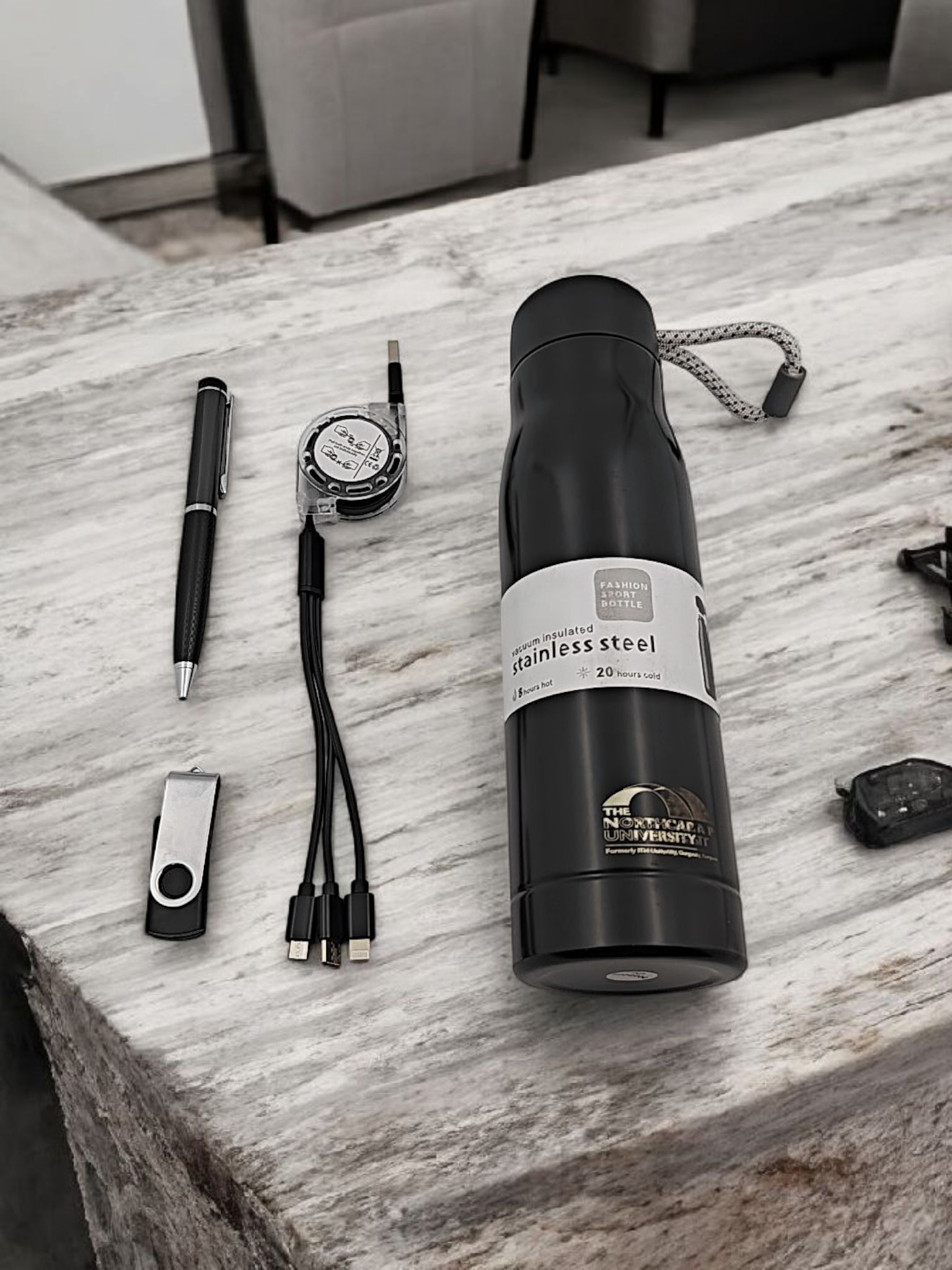 Upgrade your business gifting with this stylish and functional Premium Corporate Gift Set in Black. Designed to enhance corporate relationships and employee recognition, this 8-in-1 set includes all the essentials needed for daily office use and travel. The items come neatly packed in a premium box, making it an ideal choice for festivals, corporate events, and appreciation programs.