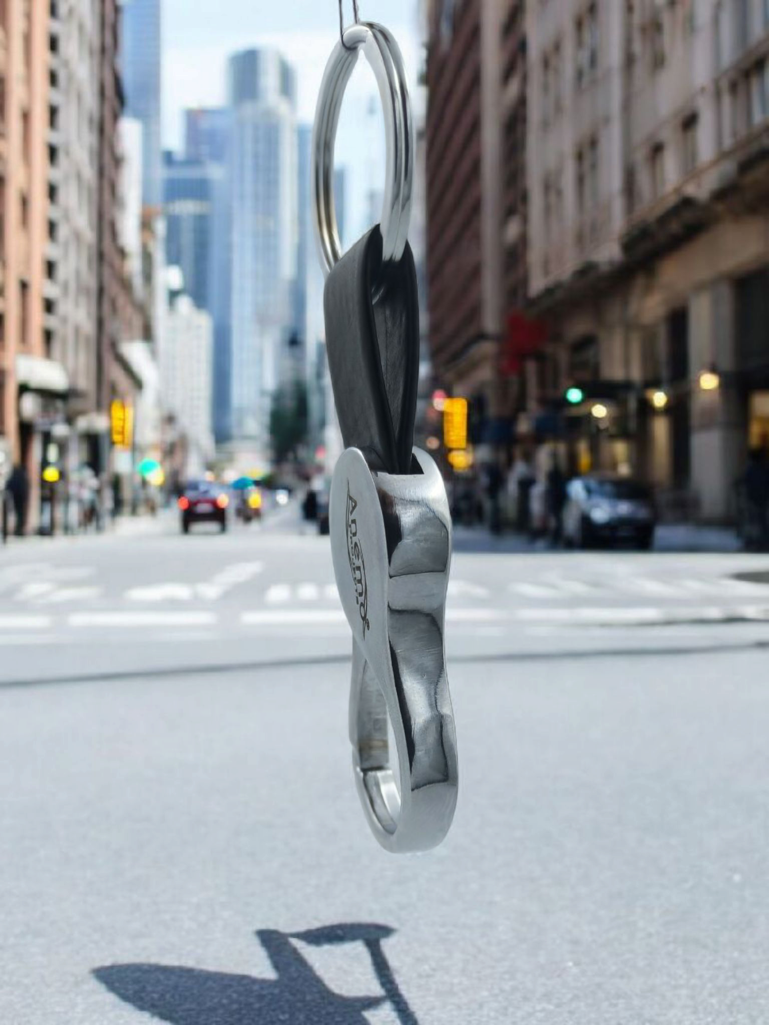Make a strong and sophisticated statement with the Anemo Metal Keychain with Leather Strap, a premium blend of form, function, and finesse